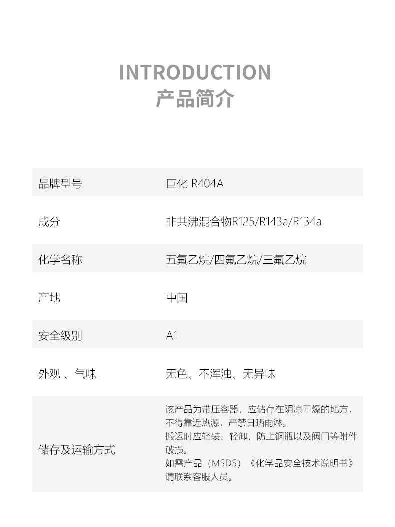 品牌型號:巨化R-404A